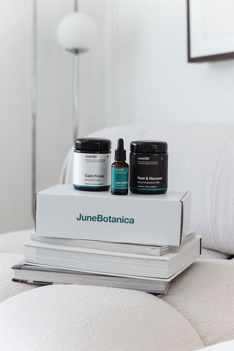 June’s Blend (Full Spectrum + Organic MCT Oil) : A versatile formula that fits easily into any part of your day, with flexible serving options.